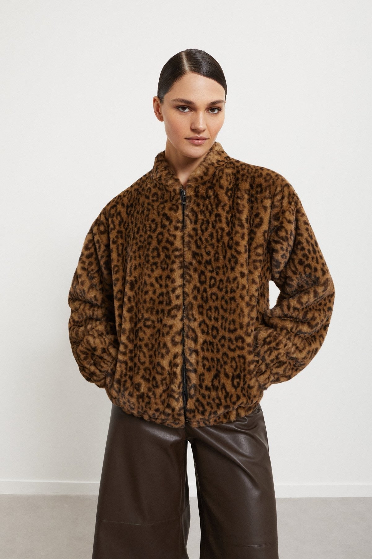 Giacca in ecopelliccia con zip